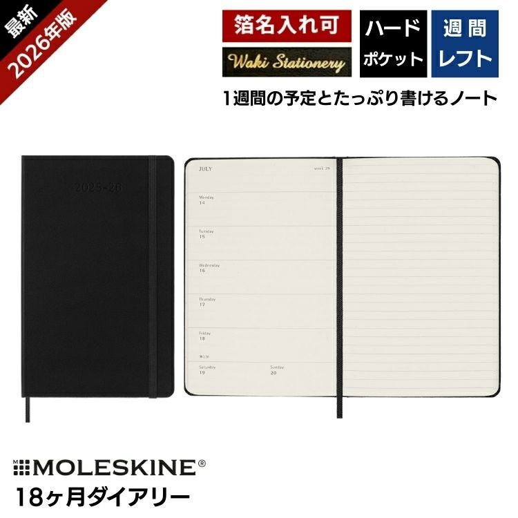 モレスキン 手帳 2026年 18ヶ月 ダイアリー 7月始まり 週間 レフト ウィークリー ソフトカバー ポケット ブラック