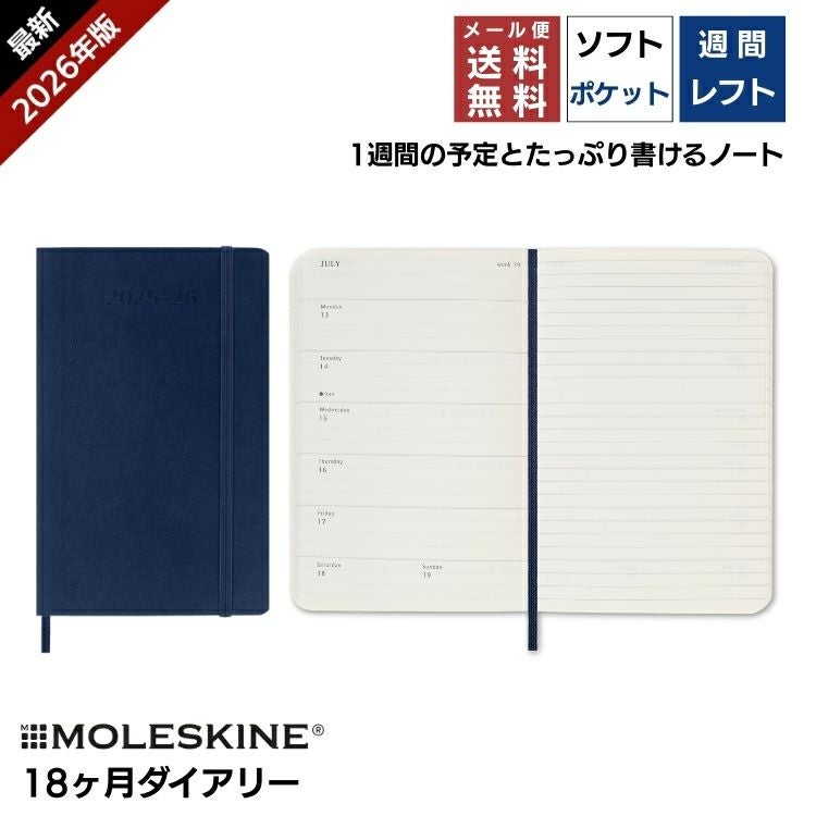 モレスキン 手帳 2026年 18ヶ月 ダイアリー 7月始まり 週間 レフト ウィークリー ソフトカバー ポケット ブラック