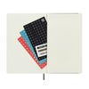 マチ付ポケットでメモや名刺をストックモレスキン定番の拡張ポケット。マチがあるので中身が取り出しやすいです。メモや名刺、書類を入れるのに重宝します。