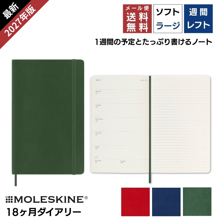 モレスキン 手帳 2027年 18ヶ月 ダイアリー 7月始まり 週間 レフト ウィークリー ソフトカバー ラージ ブラック