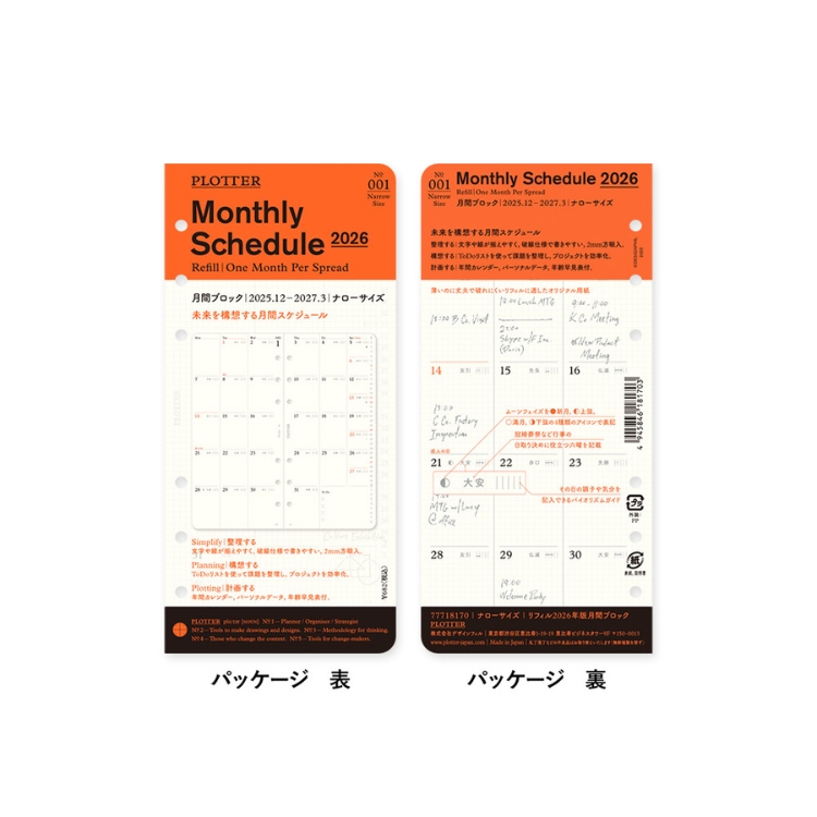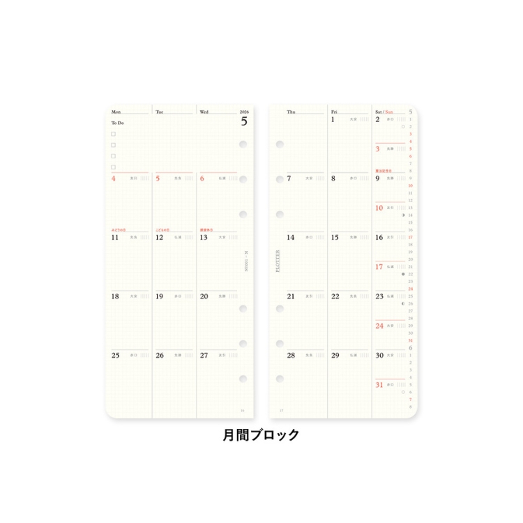 プロッター PLOTTER リフィル 2026年版 手帳 週間レフト式( ナローサイズ )