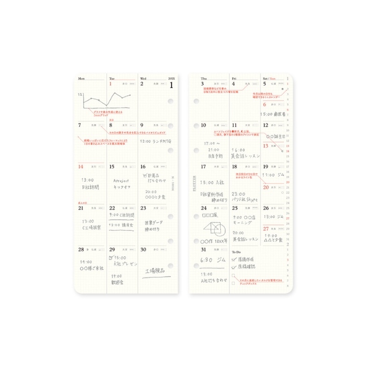 未来を構想するダイアリーリフィル緻密に設計されたデザインで「整理する」「構想する」「計画する」をシンプルにし、思考を邪魔しない印刷色が書く人の創造力を働かせ未来を切り拓きます。