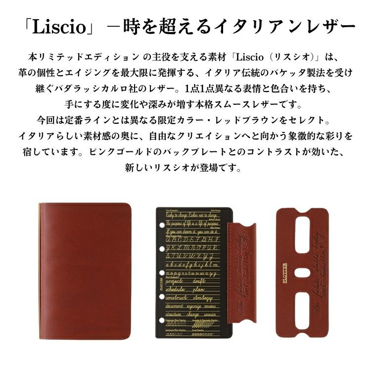 メモリアルイヤーを記念して、レザーバインダー リスシオ リミテッドBOXが登場!PLOTTERがリスペクトして止まないバダラッシカルロ社のLiscioから、定番とは異なるスペシャルカラー(レッドブラウン)をセレクション。