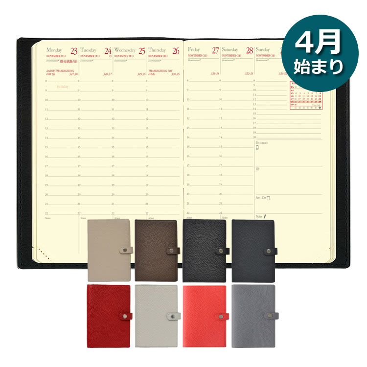 フランス生まれのQuovadis(くおばでぃす)4月はじまり手帳。手帳ランキングにも常にランクインする人気のブランドです。曜日ごとのNotesスペースが便利。落ち着いたデザイン、優しい印象のアイボリーペーパーを使ったプレステージシリーズのリフィルです。