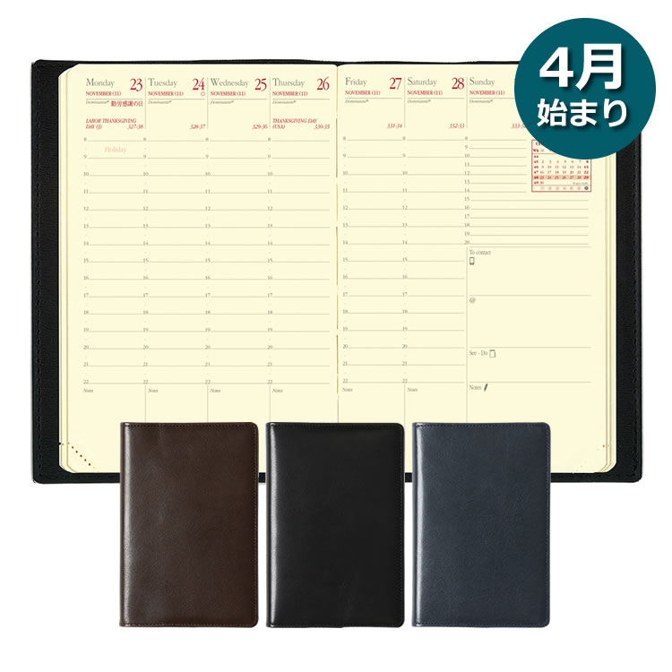 フランス生まれのQuovadis(くおばでぃす)4月はじまり手帳。手帳ランキングにも常にランクインする人気のブランドです。曜日ごとのNotesスペースが便利。落ち着いたデザイン、優しい印象のアイボリーペーパーを使ったプレステージシリーズのリフィルです。
