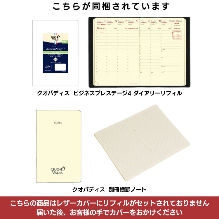 フランス生まれのQuovadis(くおばでぃす)4月はじまり手帳。手帳ランキングにも常にランクインする人気のブランドです。曜日ごとのNotesスペースが便利。落ち着いたデザイン、優しい印象のアイボリーペーパーを使ったプレステージシリーズのリフィルです。