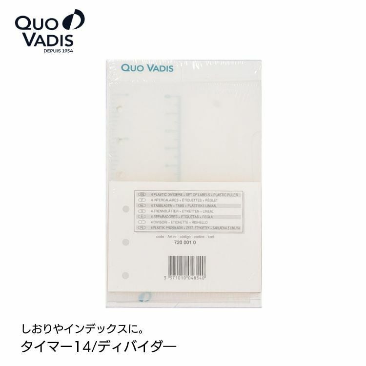 クオバディスのシステム手帳は、幅広い情報と資料整理に便利な合理的なデザインです。ミニ6穴タイプの「タイマー14」専用です。レフィルのみ、またアクセサリーのみのご購入ご希望の方のために、別売いたしております。