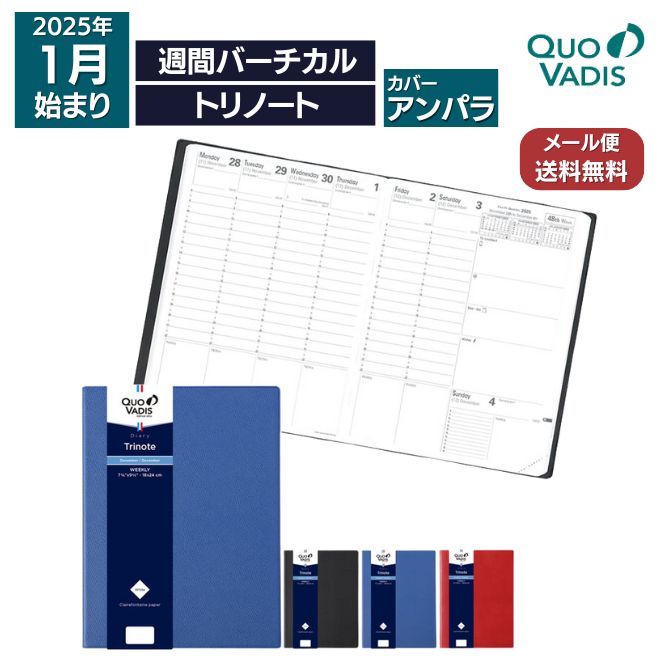 薄型の手帳をお探しなら、フランス生まれのQuovadis(くおばでぃす)手帳。手帳ランキングにも常にランクインする人気のブランドです。男女問わずビジネスパーソンに人気の「トリノート」。日毎のメモ欄が充実したフォーマットと、デスクダイアリーでありながら鞄にも収まりの良いサイズ感が魅力です。1時間ごとに時間が刻まれたバーチカルタイプで予定や記入情報の多い方におすすめ。こちらは「トリノート」のリフィルになります。
