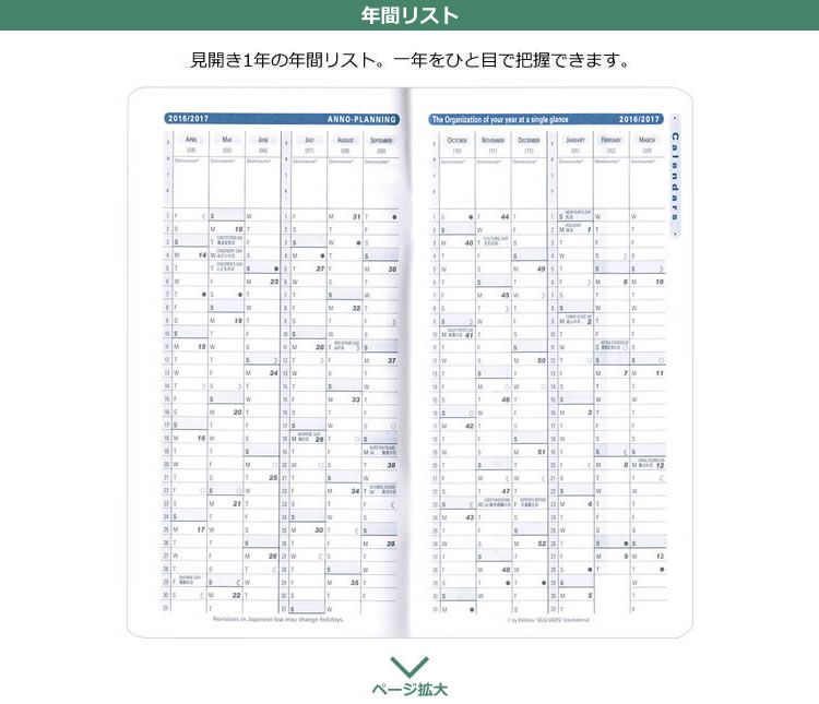 ■ビソプラン4の特徴クオバディスの月間見開きポケットダイアリー。ジャケットの内ポケットにも入ります。サブダイアリー、卓上のカレンダーとしても使用することができます。