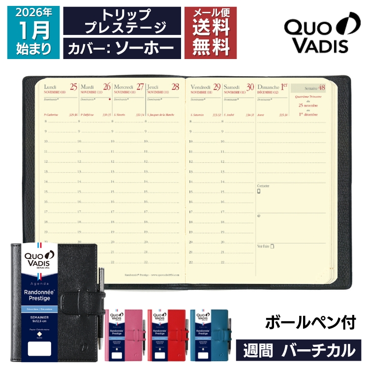 ■ビジネスプレステージの特徴日本国内で最も人気があるサイズにエレガントで落ち着いたアイボリーペーパーを使用。曜日ごとのノートスペースが便利なクオバディスダイアリーです。