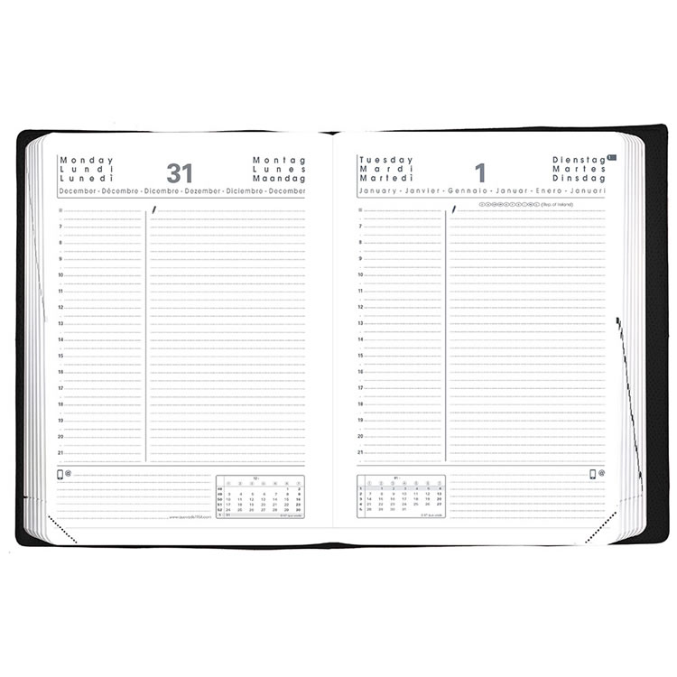 ■ABP1の特徴8時から23時までのタイムスケジュール目盛り付きの1日1ページのダイアリー。左ページ下に今月の、右ページ下に来月の、ミニカレンダーがついています。
