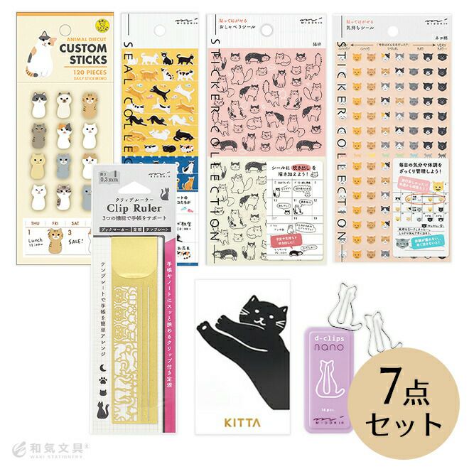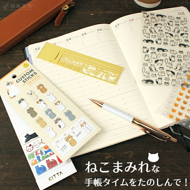 ねこ好きの皆さんにご好評の「にゃーにゃー手帳カスタマイズセット」和気文具のねこ好きスタッフ厳選の文具セットです。この1セットで手帳が「ねこまみれ」になる優れものですよ!手帳をねこちゃんだらけにアレンジしましょう♪
