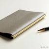 新開発のオリジナルバックプレート構造(PAT.)とリングで直接一枚革を挟み込んだ構造で、今までのシステム手帳のイメージを一新。座金に入ったブランドロゴもさりげなく上品で、本革の魅力を引き立てます。綺麗な色合いのシュリンクレザーにはアンティークゴールドのバックプレートを使用しており素材感のコントラストを効かせています。