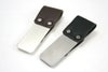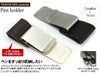 革とメタルの素材感を楽しむ裏側の二つの金具で革とクリップをとめています。レザーとメタルのコンビがとってもお洒落です。