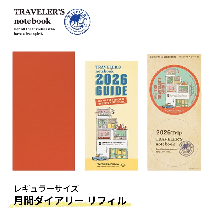 トラベラーズノート レギュラーサイズ専用の月間ダイアリーリフィルです。見やすく使いやすい人気のフォーマットです。