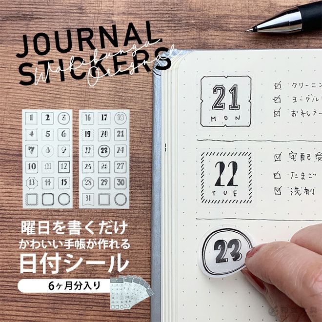 他の画像を見る 【6セット】和気文具オリジナル 手帳シール JOURNAL STICKERS 日付 モノトーン【メール便送料無料】 【6カ月分入り】【日付シール】【ダイアリーシール】【貼ってはがせる】 ◇ メール便無料 価格 ¥ 3,278 税込 カートに入れる お気に入りに登録する