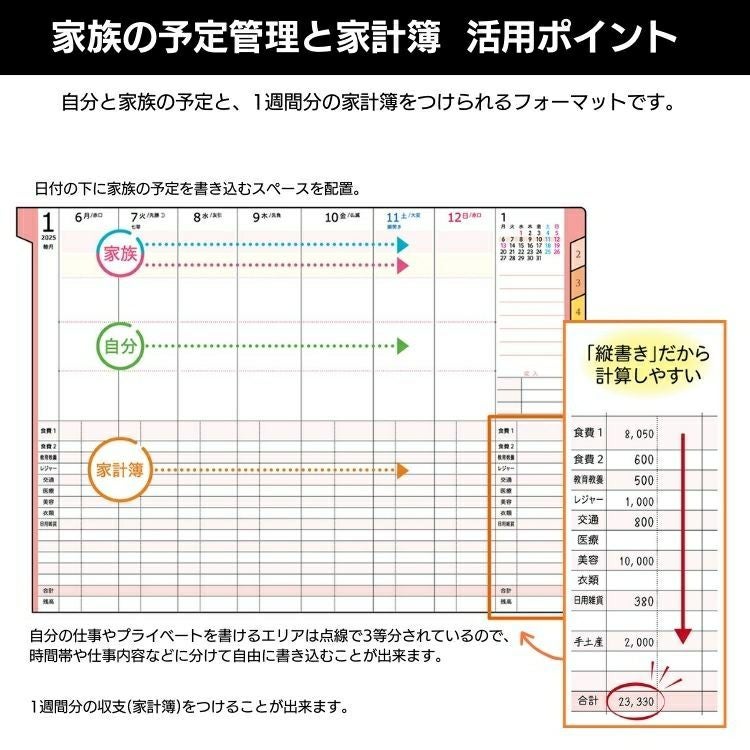 他の画像を見る 家族の予定とお金の管理ができる手帳 クツワ 手帳 2026年 家族 + 家計簿 付き 手帳 B6 週間 KUTSUWA ダイアリー【メール便送料無料】 2025年 12月始まり ◇ メール便無料 価格 ¥ 2,750 税込 在庫切れ カートに入れる お気に入りに登録する