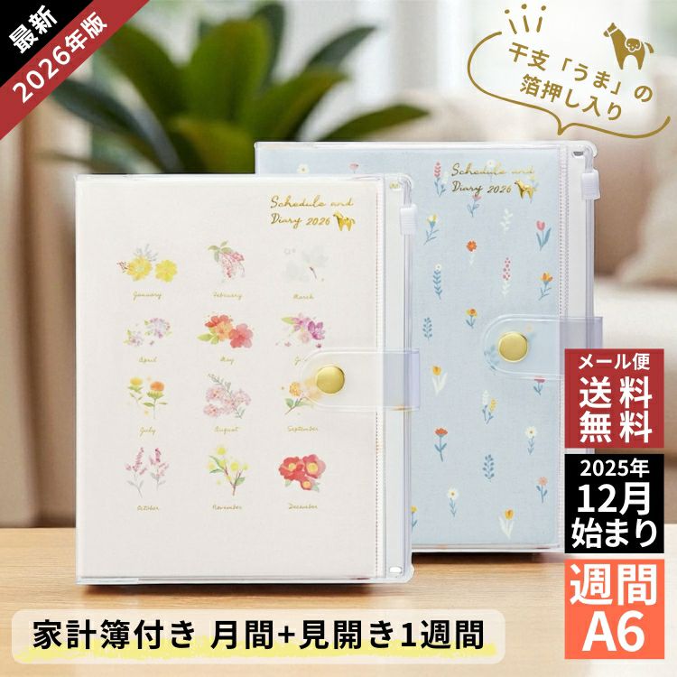 他の画像を見る 毎月の予定と家計簿がこれ1冊で管理できる クツワ 手帳 2026年 家計簿 付き 手帳 A6 週間 KUTSUWA 花柄 ダイアリー【メール便送料無料】 2025年 12月始まり ◇ メール便無料 価格 ¥ 2,090 税込 在庫切れ カートに入れる お気に入りに登録する