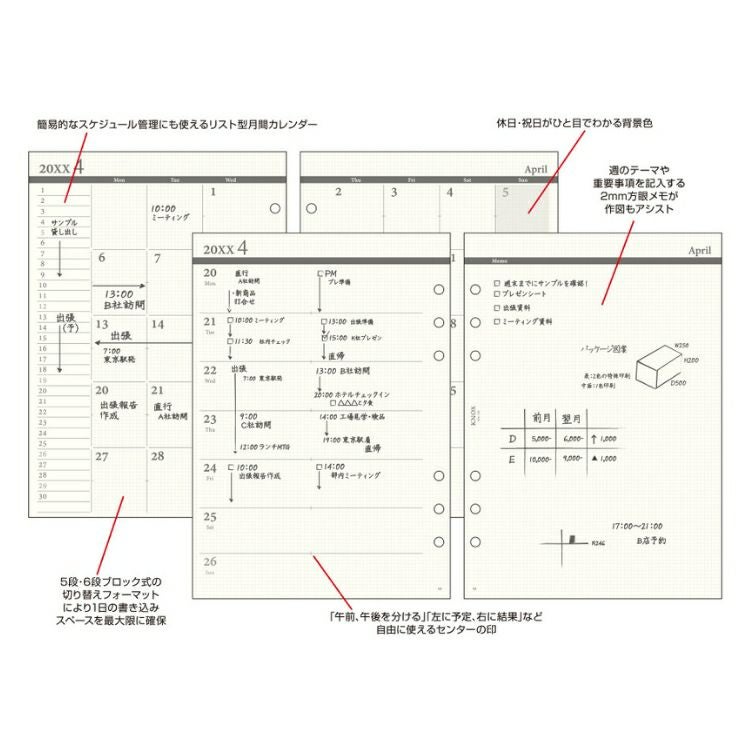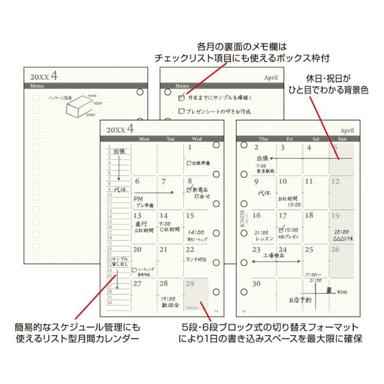 他の画像を見る 【ミニ】システム手帳リフィル 手帳 2026年 ノックス システム手帳 リフィル 日付入 見開き1ヵ月間ブロック式+見開きメモ ミニ 523-107 ◇ 価格 ¥ 1,034 税込 カートに入れる お気に入りに登録する