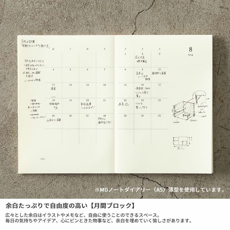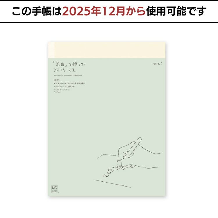 他の画像を見る たっぷりの余白とシンプルで使いやすいフォーマットが魅力 手帳 2026年 ミドリ 月間ブロック MDノート ダイアリー A4変形 薄型 12月始まり ◇ 価格 ¥ 2,200 税込 カートに入れる お気に入りに登録する