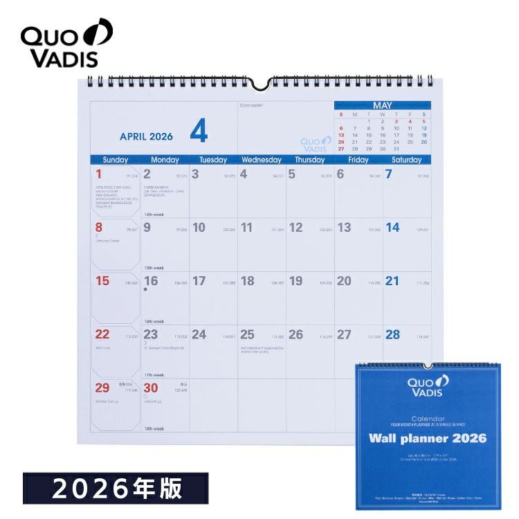 他の画像を見る 2026 カレンダー 壁掛け クオバディス 2026年 カレンダー クオバディス ウォールプランナー 壁掛けカレンダー ウォールタイプ[30x30cm] 価格 ¥ 2,970 税込 カートに入れる お気に入りに登録する