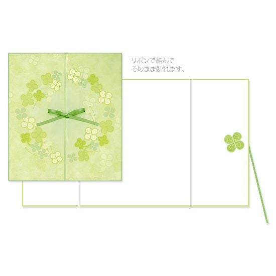 ミドリ midori カラー色紙 両開き リボン クローバー柄