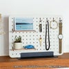 小さな棚に飾れる収納。バーフックを2本同梱しているのでこぼれ止めにして高さのあるモノを置くことができます。バーフック単体にお手持ちのクリップを組み合わせれば、写真やポストカードなどを飾ることもできます。