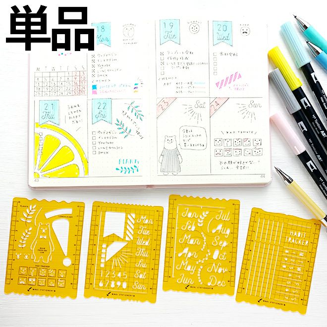 かわいい自作手帳がかんたんに書ける『和気文具オリジナル 手帳テンプレート』週間、月間のテンプレートはB6~A5サイズのノートを使って手帳の罫線をかんたんに書くことができます。トラッカー、イラストは既存の手帳にも使えるので自作手帳はハードルが高いと思う人にも気軽にお楽しみいただけます。