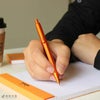 握りやすい六角形のペン軸スラスラとした書き心地を味わえますペン軸は、鉛筆のように握りやすい六角形です。自然と指になじみ、綺麗な姿勢でペンを構えられるのでスムーズな書き心地を味わうことができますよ。デスクで座りながら会議のメモをとる時営業先で立ちながら打ち合わせのメモをとる時など、様々なシーンでスマートな筆記が可能です。
