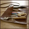 革紐にも時間をかけました意外と苦戦したのが紐でした。はじめは見た目の良さからスエードで試作したんですが強度が足りずだめでしたね。同革を2枚合わせではり合わせステッチを走らせることで強度に加え、革が伸びるのを防いでくれます。本体との接続部分は、ポケットに隠れて見えませんが半円に切った革をはって紐端が見えないように工夫しています。