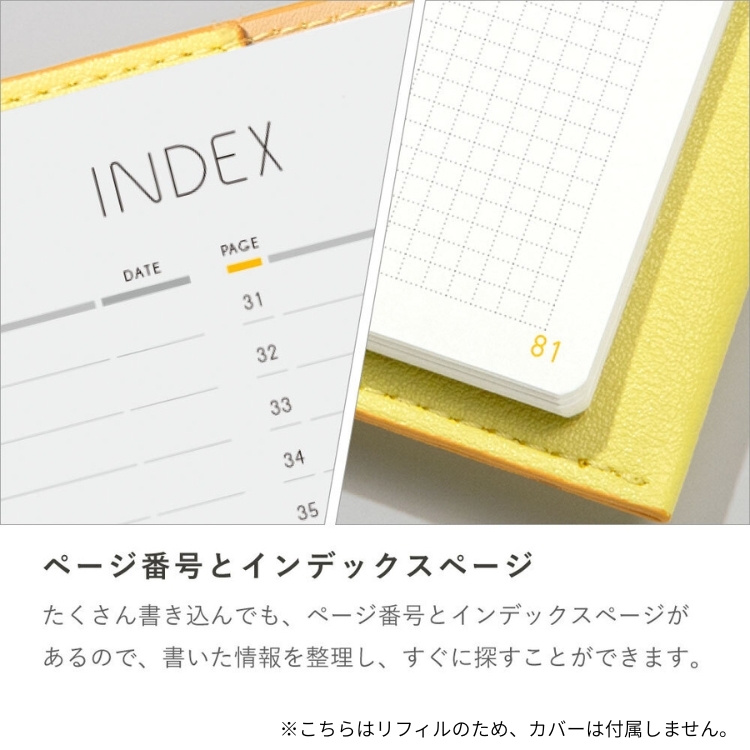 デザインも、使いやすさも十分に考えられたスタイリッシュなノート。手触りがよくしっかりとしたPUレザーカバーなので、毎日使っても安心な頼れるノート!また、インデックスとページ番号入りの本文なのでバレットジャーナルにもおすすめです。