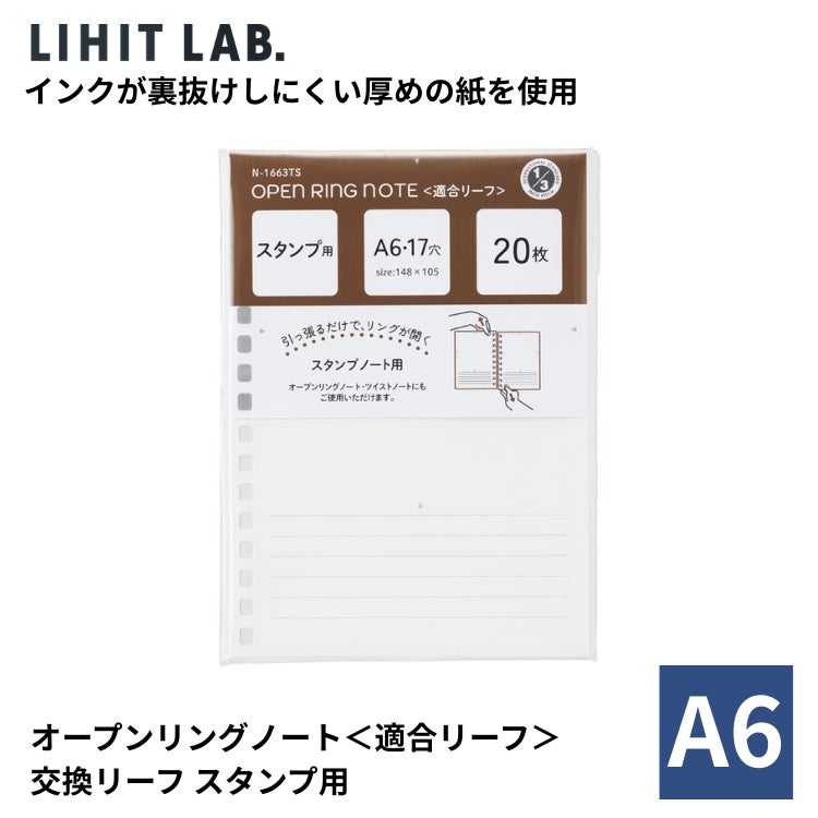 スタンプを押せるリーフが入ったノート。リングを開いてリーフの追加・交換ができる。