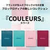 ブロックロディアの新しいコレクション「COULEURS」カバーデザインは、フランスらしい美しいカラーパレットのターコイズ、ブルー、プラム、ピンクの4色。