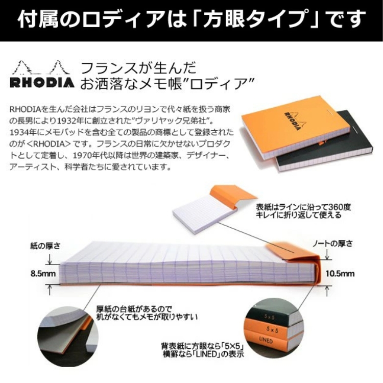 たっぷり書き込めるNo.16のロディアをいつでもお洒落に持ち歩けて切り離した大事なメモも一緒に保存できます。