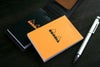 定番のオレンジカラーにロディアのロゴマーク。裏面にホチキスが出ないように設計されています。ナンバーが書かれていて、おしゃれな雰囲気♪