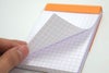 ブロックロディアは横罫、5mm方眼の2タイプ。横罫には表紙に「LINED」の文字がプリント。台などがなくても記入しやすいように後ろ側が厚紙で補強されており、手持ちでもとても書きやすい仕様です。