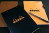 淡いパープルカラーの5mm方眼、横罫が両面に印刷された滑らかで反射のない用紙は、鉛筆にはやわらかいタッチを、ボールペンにはあざやかな発色を、万年筆にはインクにじみの無いスムースな書き味を保証します。各ページに入ったミシン目のマイクロカット加工により、切り離しの際に抵抗感が無く、けばだちとは無縁のすっきりした切断面を保ちます。計算された3本の折り目により、表紙を360度裏側に毎回一定のかたちにすっきりと折り返すことができます。屋外や立った姿勢での筆記の際の安定感が約束されていると同時に、日常使いで生じる厚みと質感の変化の影響を最小限にとどめ、最後の1枚までステーショナリーとしての美しいフォルムで使い続けることができます。