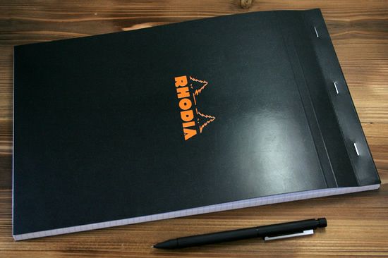 かっこいいブラックカラーにロディアのロゴマーク。裏面にホチキスが出ないように設計されています。スペック記載がおしゃれな雰囲気♪