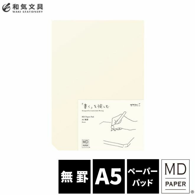 人気の「MDペーパーパッド」<A5>無罫書き方にとらわれず、たくさん書きたくなる無罫のペーパーパッド。
