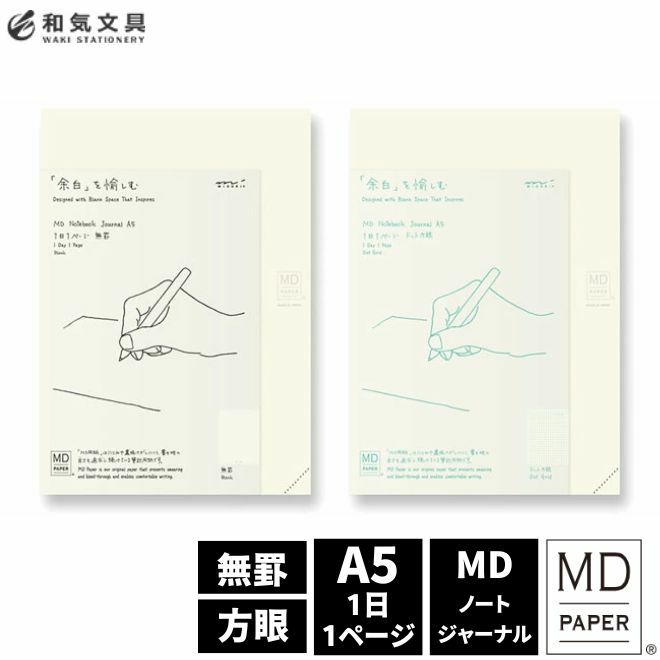 2023年1月にリニューアルした『MDノート ジャーナル 1日1ページ』本文だけでなく、表紙や見返しに「MD用紙」を使用して書き心地を極めました。