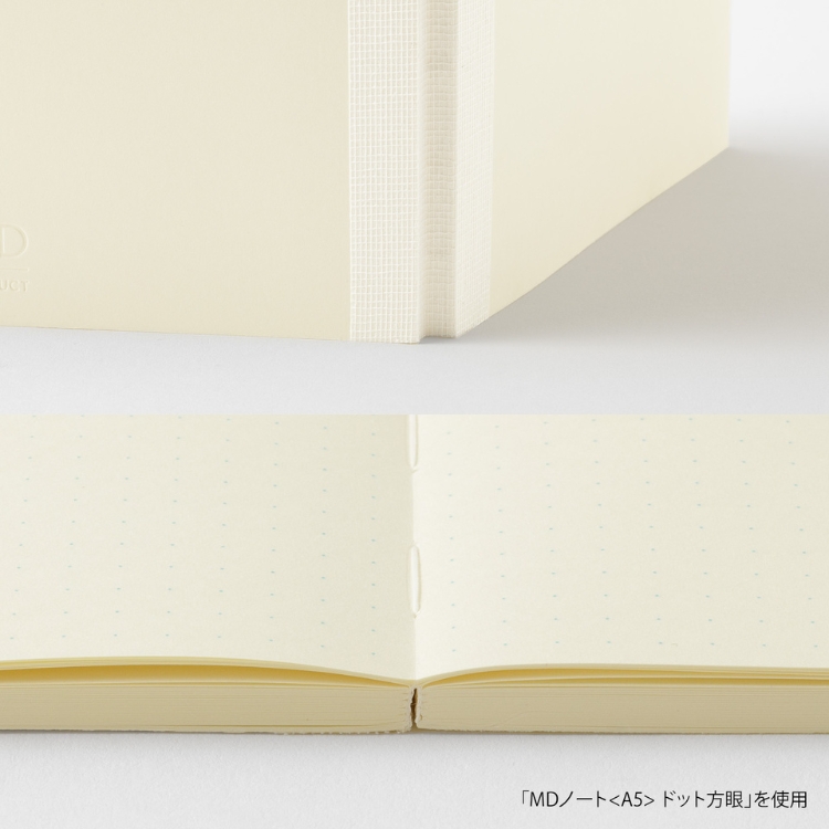本文だけでなく表紙や見返しにもMD用紙を使用。外側を包まない無垢な仕立てが特徴です。