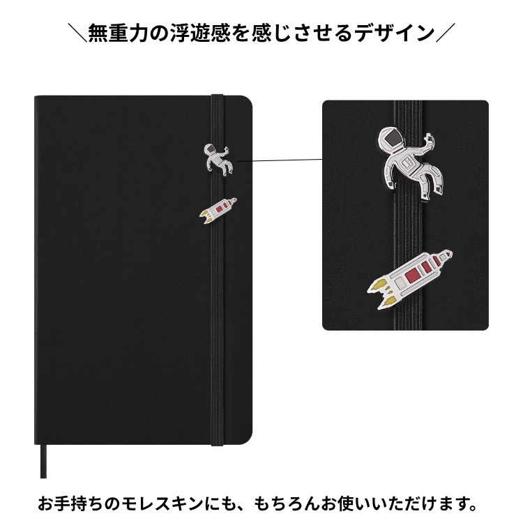 NASAをモチーフにした限定ピン。ノートやダイアリーのゴムバンドを彩るパーソナルなアクセントとしてお楽しみいただけます。