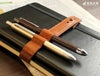ペンホルダーのついた革の手帳バンド。手帳の広がりを押さえたり、ペンと一緒に持ち運びできるなど、手帳と一緒に使うと便利すぎて手放せないアイテム。高級感を感じるミネルバボックスレザーがお洒落です。