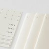 書き心地の良いMD用紙にシール加工をした「書く」を愉しむダイアリーシールです。日付の記載がないフリータイプで、「MDノート」と同じMD用紙で、MDノート、手帳に自然に馴染みます。