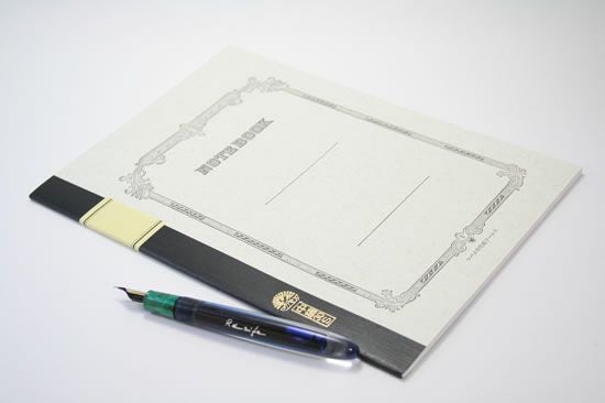 万年筆での筆記を前提に作られているので、インクの浸透もよく、裏抜けの心配も無い。簀の上で漉すので、光に透かすと簀の目模様がやロゴが浮かび上がる。