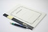 万年筆での筆記を前提に作られているので、インクの浸透もよく、裏抜けの心配も無い。簀の上で漉すので、光に透かすと簀の目模様がやロゴが浮かび上がる。
