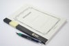万年筆での筆記を前提に作られているので、インクの浸透もよく、裏抜けの心配も無い。簀の上で漉すので、光に透かすと簀の目模様がやロゴが浮かび上がる。