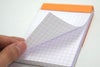 ブロックロディアは横罫、5mm方眼の2タイプ。横罫には表紙に「LINED」の文字がプリント。台などがなくても記入しやすいように後ろ側が厚紙で補強されており、手持ちでもとても書きやすい仕様です。