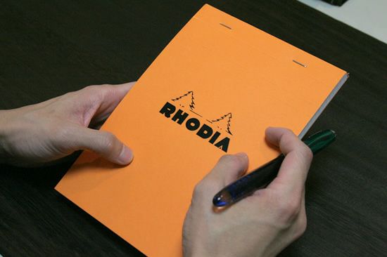 淡いパープルカラーの5mm方眼、横罫が両面に印刷された滑らかで反射のない用紙は、鉛筆にはやわらかいタッチを、ボールペンにはあざやかな発色を、万年筆にはインクにじみの無いスムースな書き味を保証します。各ページに入ったミシン目のマイクロカット加工により、切り離しの際に抵抗感が無く、けばだちとは無縁のすっきりした切断面を保ちます。計算された3本の折り目により、表紙を360度裏側に毎回一定のかたちにすっきりと折り返すことができます。屋外や立った姿勢での筆記の際の安定感が約束されていると同時に、日常使いで生じる厚みと質感の変化の影響を最小限にとどめ、最後の1枚までステーショナリーとしての美しいフォルムで使い続けることができます。
