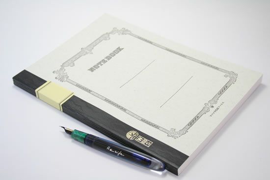 万年筆での筆記を前提に作られているので、インクの浸透もよく、裏抜けの心配も無い。簀の上で漉すので、光に透かすと簀の目模様がやロゴが浮かび上がる。